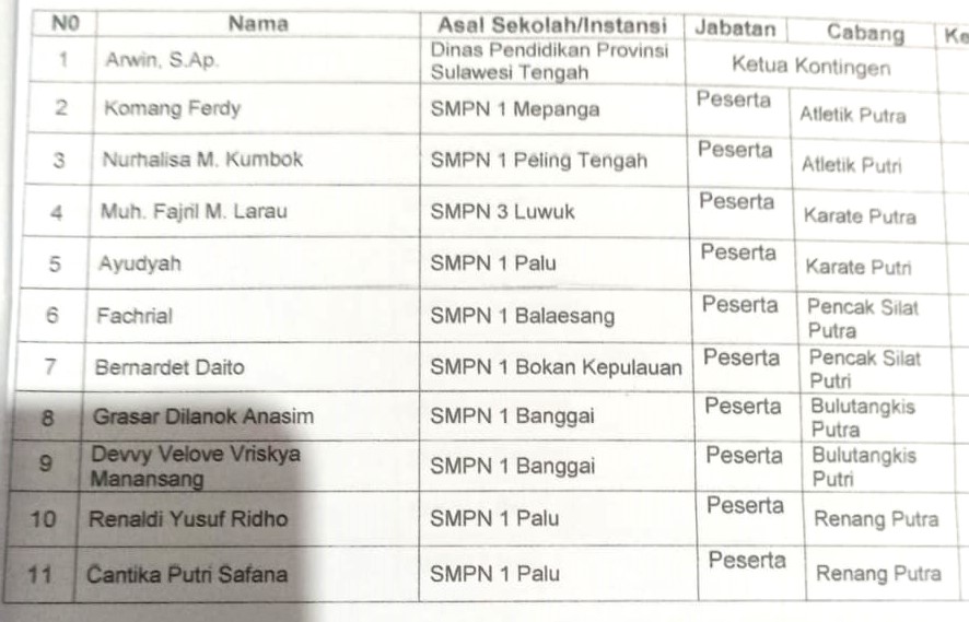Sementara jenjang SMP, ada Cantika Putri Savana. Perenang putri terbaik Sulteng ini mewakili cabor renang bersama Reinaldi Yusuf Ridho. Keduanya sekolah di SMPN 1 Palu.