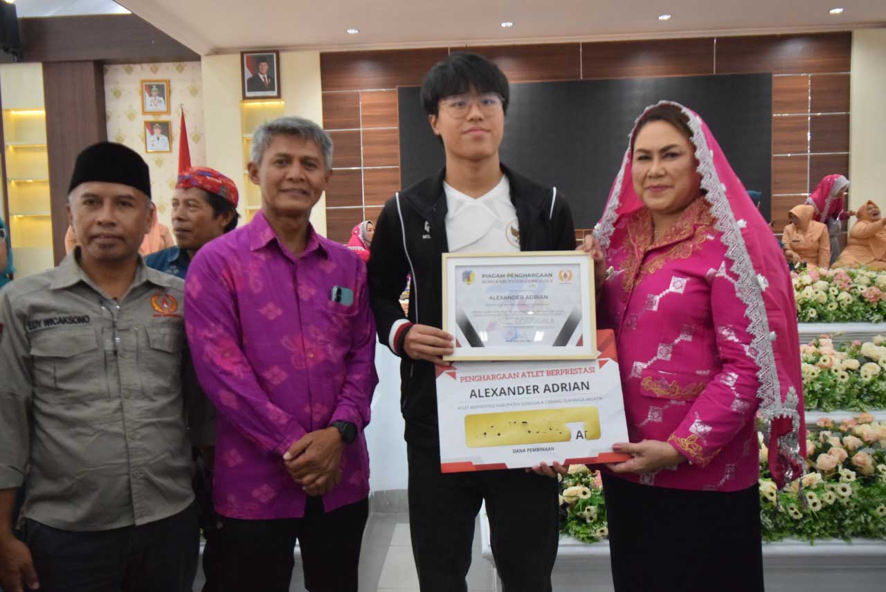 Selain Alex, Bupati Vera juga menyerahkan penghargaan kepada Alharjun pelatih kickboxing dan juga tokoh olahraga Donggala Surudin Labilla.