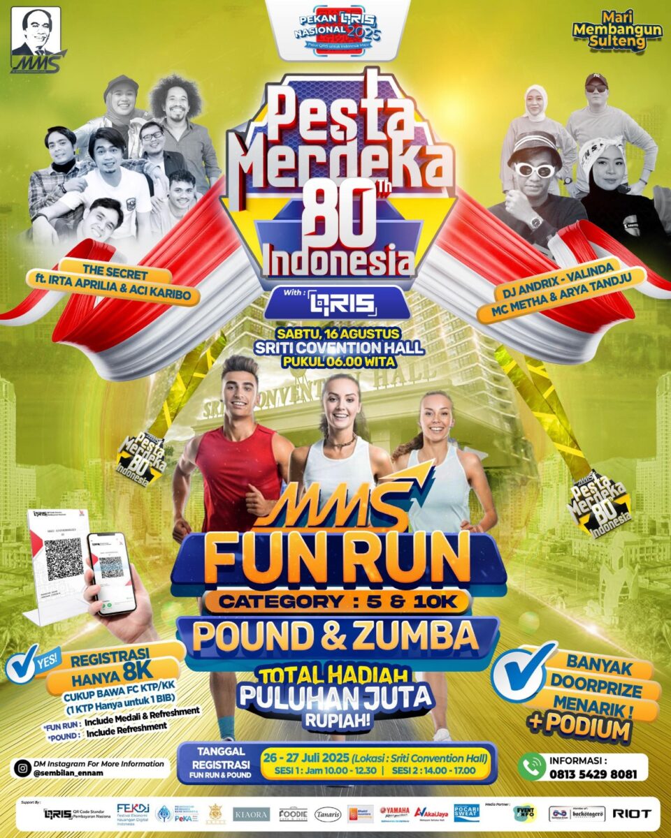 MMS fun Run Pesta Merdeka tahun ini ketiga kali digelar sejak 2022. Tahun ini dilaksanakan pada Sabtu 16 Agustus 2025. di tempat yang sama Sriti Convention Hall Palu.