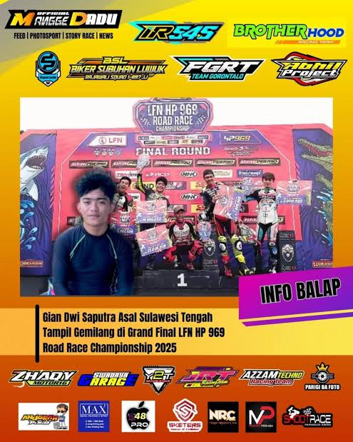 SURABAYA, sportz.id— Racer balap motor terbaik Sulawesi Tengah, Gian Dwi Saputra, kembali menorehkan prestasi gemilang di kancah nasional.