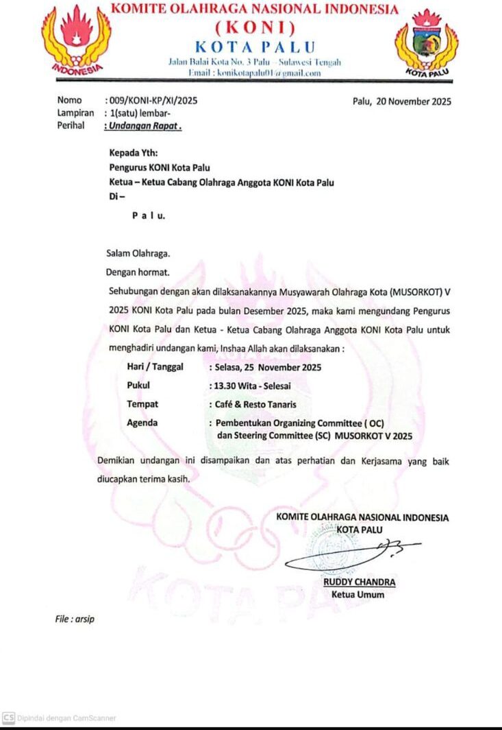 Undangan KONI Kota Palu pembentukan panitia tidak melalui Raker.