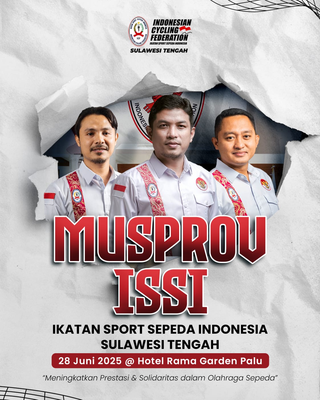 PALU, sportz.id – Musyawarah Provinsi (MUSPROV) Ikatan Sport Sepeda Indonesia (ISSI) Sulawesi Tengah mengalami perubahan jadwal pelaksanaan. Awalnya direncanakan pada 28 Juni 2025, namun berdasarkan surat PB ISSI Nomor 0305/B-PB.ISSI/VI/2025 dan pertimbangan teknis lainnya, pelaksanaan MUSPROV dimundurkan menjadi 12 Juli 2025.