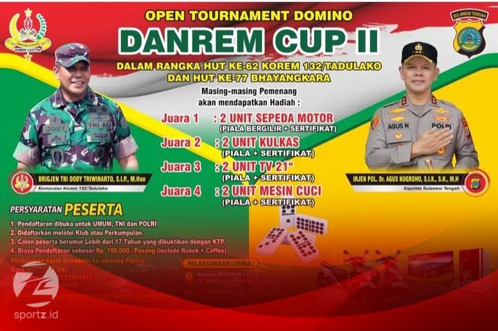 Kejuaraan yang digelar menyemearakkan HUT ke-62 Korem 132 Tadulako dan HUT ke-77 Bhayangkara Polri. Ajang ini untuk mepererat tali silaturahmi antar pecinta olahraga domino.
