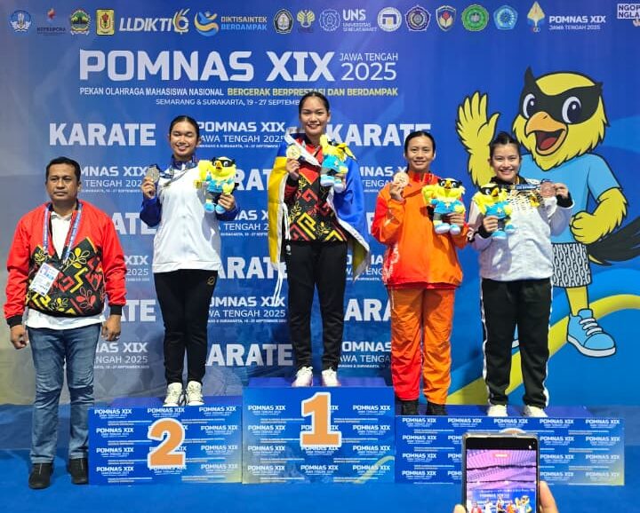Semarang, sportz.id – Kontingen Sulawesi Tengah menambah pundi medali emas di ajang Pekan Olahraga Mahasiswa Nasional (POMNAS) XIX Jawa Tengah 2025. Adalah karateka putri Universitas Tadulako (Untad) Palu, Reyva Imelda Sambenthiro, yang sukses mempersembahkan emas di nomor kumite +68kg putri.