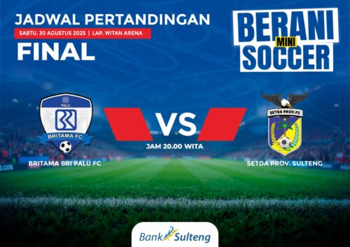 Final akan digelar di Palu Arena, Sabtu (Agustus 2025), menghadapi Britama BRI Palu FC.