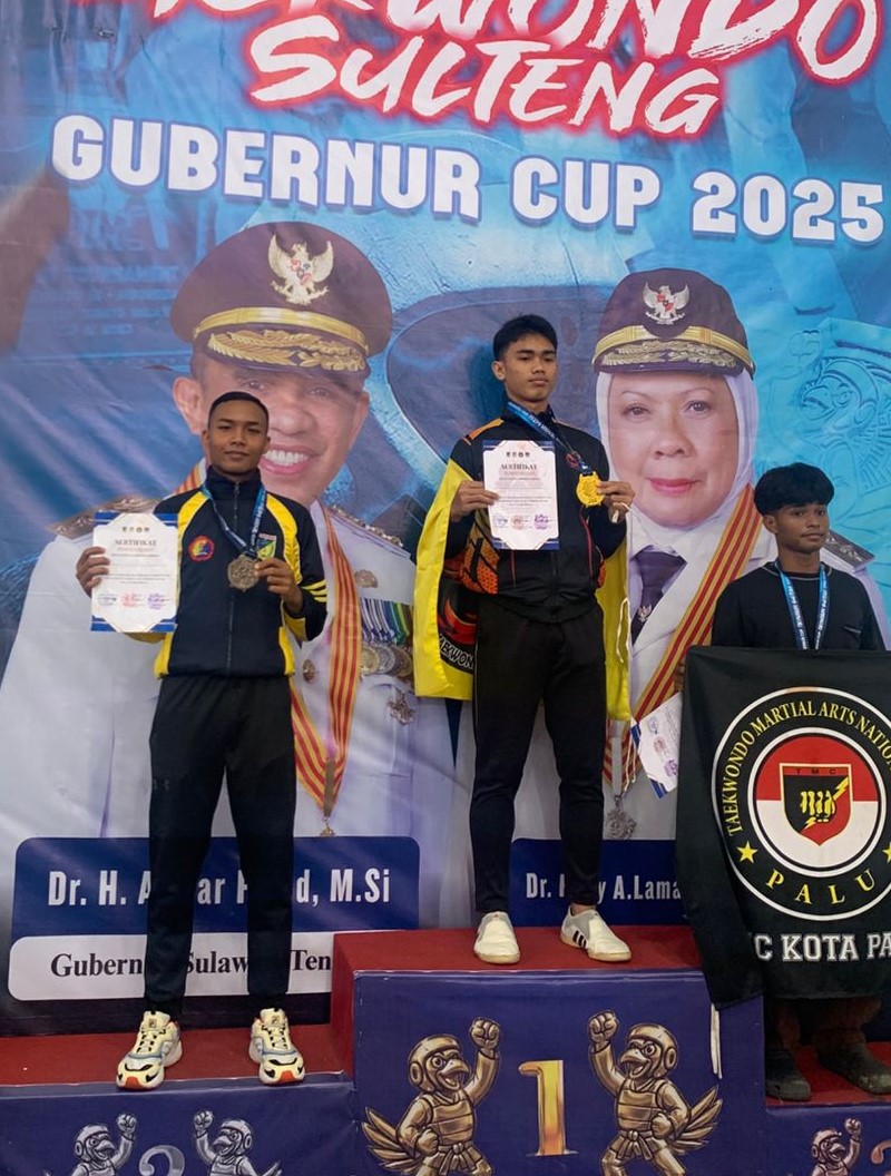 PALU — Taekwondoin SMANOR Tadulako Palu unjuk gigi pada ajang Open Turnamen Taekwondo Gubernur Cup 2025 Piala Gubernur Sulawesi Tengah yang digelar di Gedung PKM Universitas Tadulako (Untad).