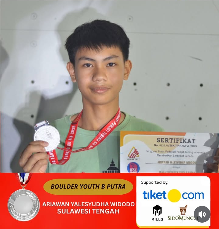 BANTEN, sportz.id – Federasi Panjat Tebing Indonesia (FPTI) Sulawesi Tengah menorehkan prestasi membanggakan dengan meraih tiga medali perak dalam Kejuaraan Nasional (Kejurnas) Panjat Tebing Kelompok Umur (KU) 2025 yang digelar di Provinsi Banten.