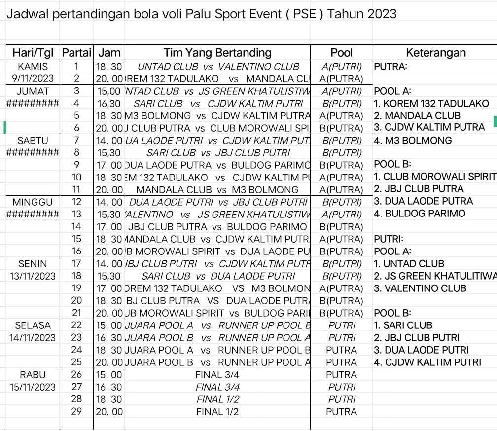 Berikut Jadwal Pertandingan Voli Palu Sport Event 2023